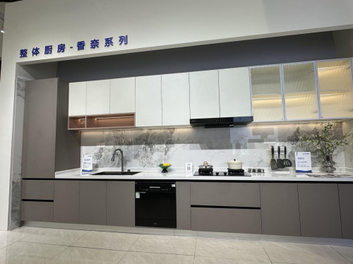 随着消费者对居住环境安全与环保需求的持续升级,“无醛”已成为家居行业的核心关键词。展会现场,万华禾香携全新“芮铂”高端精板系列、无醛成品系列&门墙柜地一体化家居解决方案升级无醛定制;万华生态新家装则聚焦旧改局改市场,以绿色工业化定制技术实现“36小时厨卫焕新”,重塑旧改效率与环保标准,双品牌合力推动行业绿色转型。
