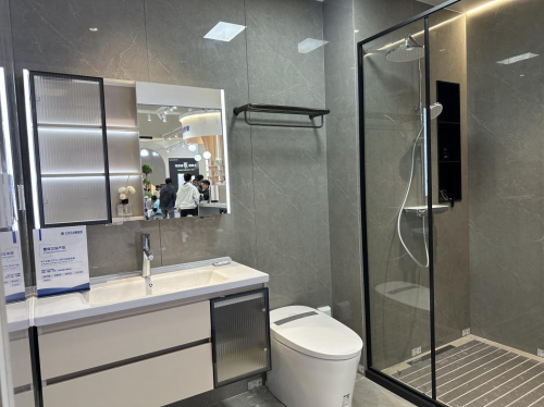 展会现场,万华生态新家装展示了与日本大和合作的案例,苏州和风雅信花园项目的雅瓷系列卫浴,还原了整体卫浴的防水工艺,展示工业化预制、干法装配,如何不用传统防水实现“防水抗渗”的神奇效率,重新定义卫浴改造标准。
