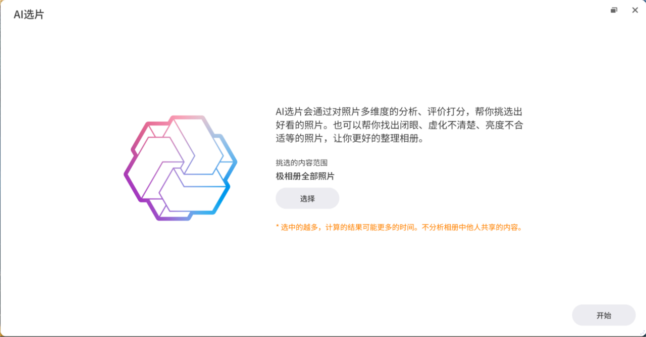极相册2.0的“AI选片”功能宛如专属摄影顾问,凭借构图评分、光线剖析、清晰度检测等多元算法,自动甄别优质照片并标记,同时揪出疑似瑕疵之作。用户无需手动逐一筛选,就能轻松为朋友圈挑选出9宫格精美照片,还能快速识别对焦模糊、过曝欠曝等问题的照片,轻松达成废片批量清理。