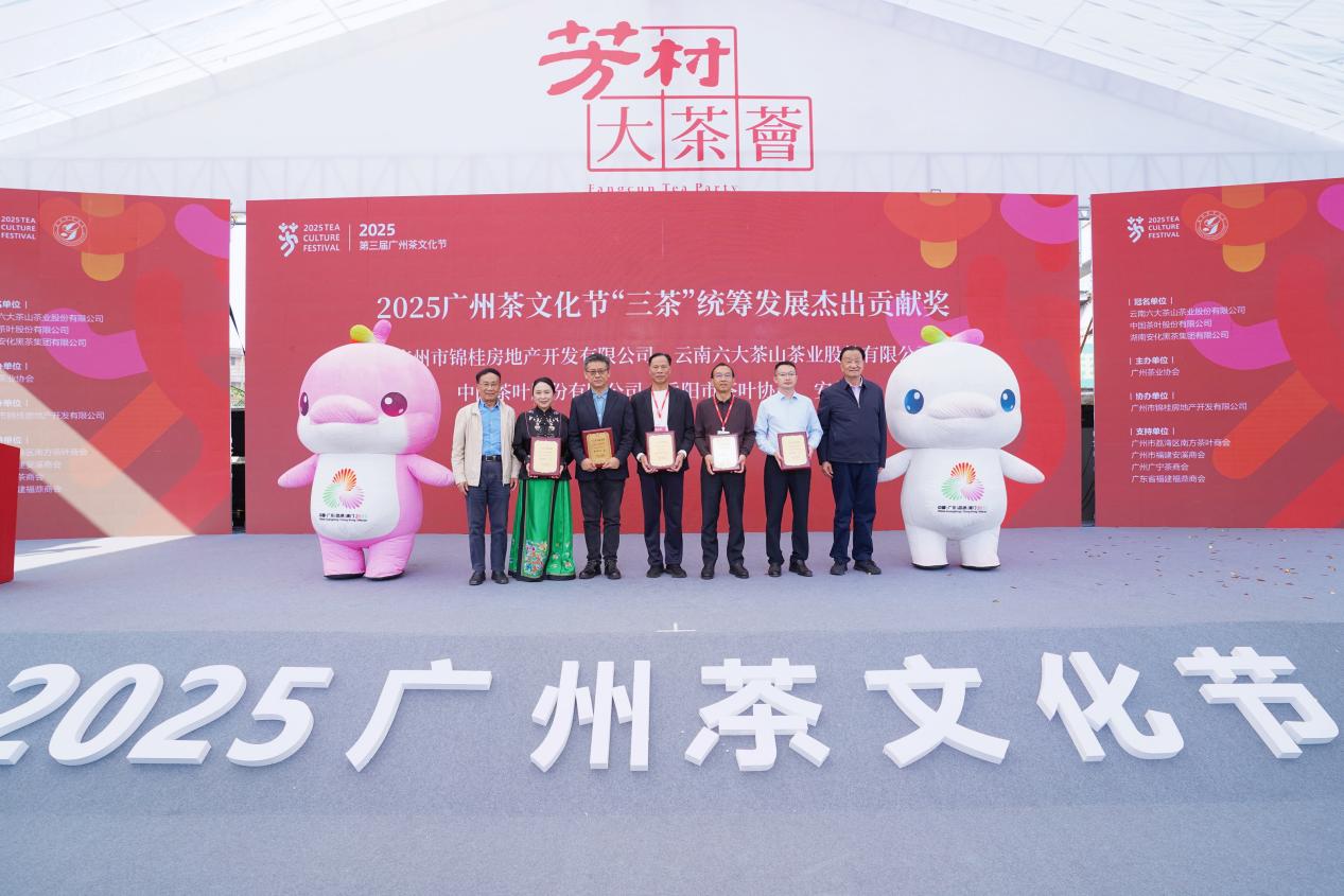 珠江波光潋滟,芳村茶香四溢。2025年12月5日下午,位于广州白鹅潭商务区的广东芳村茶业城彩旗招展,茶韵缭绕,处处洋溢着喜庆祥和的节日气氛。在全运会吉祥物“喜洋洋”和“乐融融”的欢快互动中,由广州茶业协会主办、广州市锦桂房地产开发有限公司协办的第三届广州茶文化节隆重开幕。这场以“文化赋能、精准触达、流量转化”为主线的茶业盛会云集行业精英,汇聚产业成果,将为茶文化传承创新和茶产业高质量发展注入新的活力。