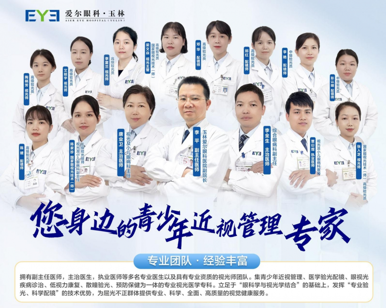 玉林爱尔眼科医院视光及小儿眼病科,始终如一地作为您与孩子视力健康的坚定守护者。我们拥有专业的门诊服务,时间为周一至周日 8:00 - 12:00、14:00 - 17:30,节假日也照常开诊。同时,我们还汇聚了知名近视防控博硕专家团队,他们凭借着深厚的学术造诣和丰富的临床经验,为您孩子的清晰“视界”全力以赴、保驾护航。选择玉林爱尔眼科,就是选择一份专业与安心,让我们一起为孩子的视力健康携手前行!