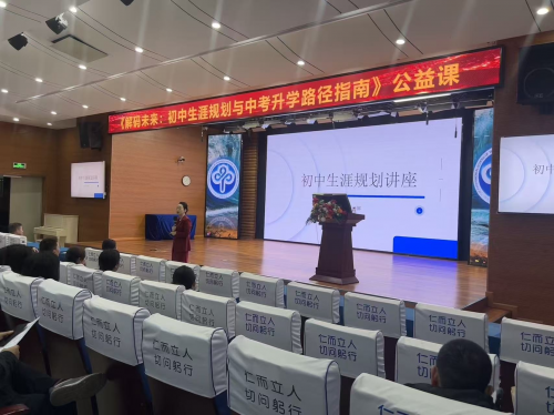 讲座伊始,周延娜老师以“初中阶段为何必须进行生涯规划”这一核心问题破题,结合多年来在升学规划领域积累的丰富案例与实战经验,深入剖析了初中生在自我认知形成、兴趣特长发展的关键期,进行前瞻性规划的重要性。她强调,科学的生涯规划能有效帮助学生摆脱学习盲从,明确个人发展方向,为后续的中考乃至更长远的人生选择奠定坚实基石。周老师生动而富有洞见的讲解,迅速引发了在场听众的深度共鸣。