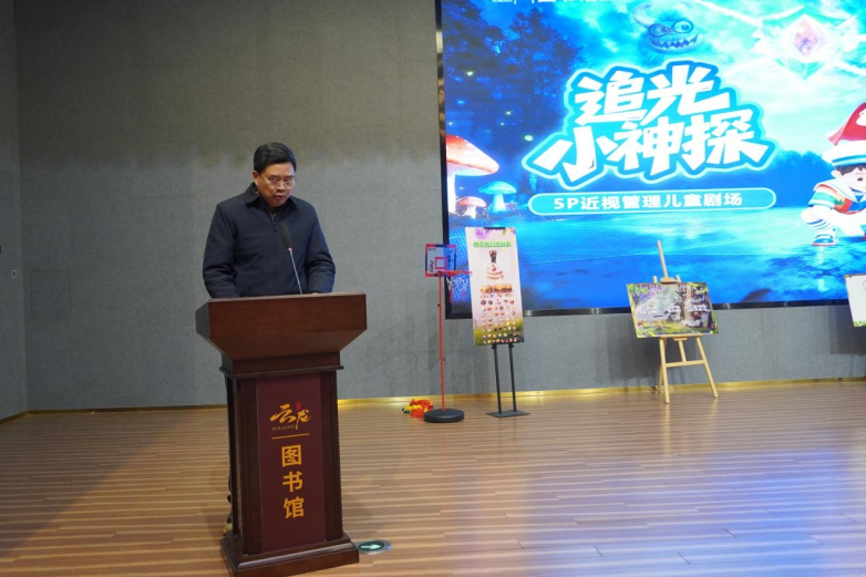 上午十时,活动正式拉开帷幕。徐州市科学技术协会科普部陈宝忠部长在致辞中表示:儿童青少年是祖国的未来、民族的希望,眼健康是他们成长成才的“第一道防线”。徐州爱尔眼科医院联合云龙区图书馆,打造《追光小神探》这部儿童近视防控科普舞台剧,是一次科普形式的创新突破,更是多方协同守护儿童眼健康的生动实践。希望主办单位一要坚持“科普+教育”融合,让护眼知识入脑入心。二要坚持“公益+惠民”导向,守护每一位孩子的光明“视界”。让每一位孩子都能享受到优质的眼健康科普服务,从中获得科学的护眼、爱眼知识。