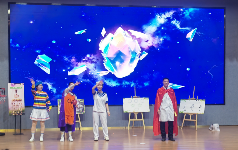 随后,由徐州爱尔眼科医院专业团队精心创排的《追光小神探》震撼登场。剧目讲述了黑暗力量夺走了守护人类视界的光明能量石碎片,世界陷入危机。三位孩子被选为“追光小神探”,与伙伴们一同踏上冒险旅程。他们穿越神秘密室、迷雾森林、状元谷和篮球场,在智斗怪兽、破解谜题的过程中,逐步夺回碎片,学会护眼知识,也收获了勇气与团队精神。最终,能量石重组,黑暗退散,真正的光明在孩子们心中点亮。剧中巧妙融入来了近视防控“四查”理念(即未近视儿童查远视储备、疑似近视儿童查真假性近视、已近视儿童查成为高度近视的风险、高度近视儿童查高度近视并发症)。