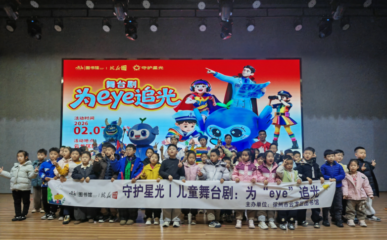 当奇幻的冒险故事遇上科学的护眼知识,会产生怎样奇妙的“化学反应”?2026年2月7日上午,云龙区图书馆内童声朗朗、掌声不断。一部专为儿童青少年量身打造的5P近视防控科普舞台剧《追光小神探》在这里成功首演,为我市广大家庭献上了一场集趣味、科普、艺术于一体的“护眼公开课”。徐州市科协科普部部长陈宝忠、市科协一级主任科员韩建军,徐州市云龙区文化体育和旅游局副局长张美丽,徐州市健康管理学会党支部书记曹俐,徐州爱尔眼科医院党支部书记王瑞等出席活动。活动通过彭城教育网同步直播,让精彩触达更多家庭。