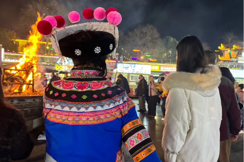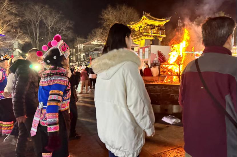 图为实践团成员围着火把感受民族节日氛围。王娅洁 供图