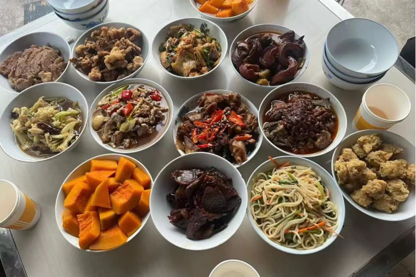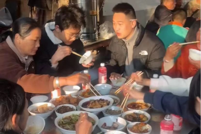 图为实践团成员一起品尝彝族年猪饭。王娅洁 供图