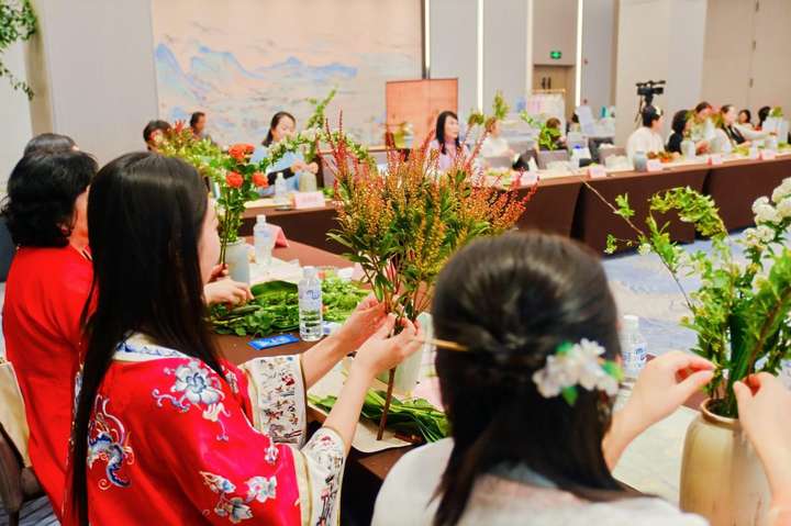 茶艺表演环节中,袅袅茶香与轻柔音乐交织,嘉宾们在品茗互动中分享创业故事,畅谈人生感悟。在花艺师带领下,嘉宾们聆听了中式花道的历史渊源与文化内涵,并亲手创作中式插花作品,将自然之美融入生活艺术。“今天的活动让我感受到传统文化的温度,也结识了许多志同道合的朋友。”一位女企业家感慨道。