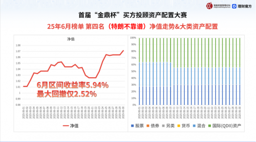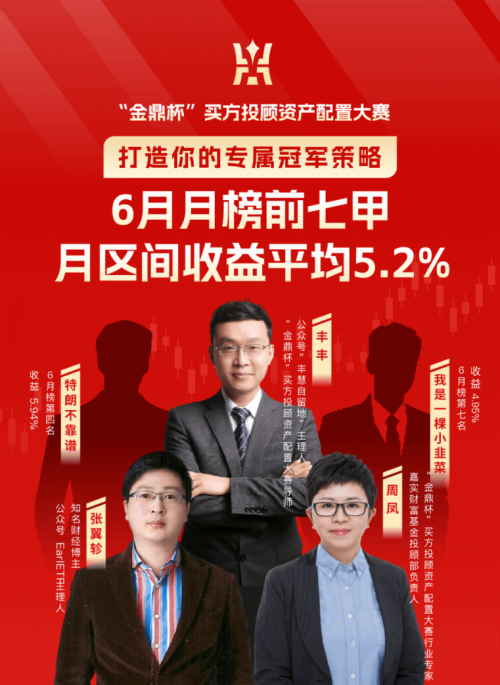 2025年首届“金鼎杯”买方投顾资产配置大赛6月榜单于近日正式公布并发起榜单解析直播。此次直播由公众号“丰慧自留地”主理人、“金鼎杯”买方投顾资产配置大赛导师丰丰作为主持人,特邀嘉宾知名财经博主、公众号EarlETF主理人张翼轸,嘉实财富基金投顾部负责人、“金鼎杯”买方投顾资产配置大赛行业专家周凤,以及6月榜上榜参赛者第四名“特朗不靠谱”、第七名“我是一颗小韭菜”,共同为大家解析6月榜战绩,并做资产配置策略分享。