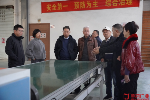 考察组一行对浙江金凯门业的智能化转型成果尤为关注,详细询问了工程端与零售端的车间设备及布局差异。周军介绍说:“公司2024年重点引入高新设备,目前智能制造项目验收在即,如果顺利通过,生产自动化率将从61%左右跃升至90%,提高生产能效的同时,满足多种复杂门扇造型的定制需求。”