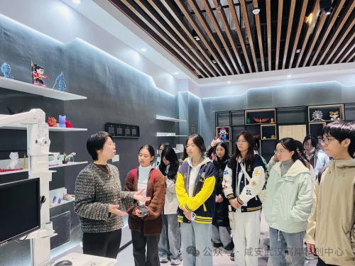 活动伊始,咸安(武汉)离岸科创中心副总经理陶霜雁向师生团详细介绍了咸安武汉离岸科创中心的功能定位——作为咸安区延伸至武汉的“离岸”创新载体,中心不仅是入驻企业深耕产业、链接资源的 “孵化地”,更是咸安区“双招双引”工作站(武汉站)开展人才对接、政策推介的“前沿阵地”。在园区展厅与入驻企业办公区,师生代表们实地参观了多家科创企业,详细了解企业业务模式和人才需求。