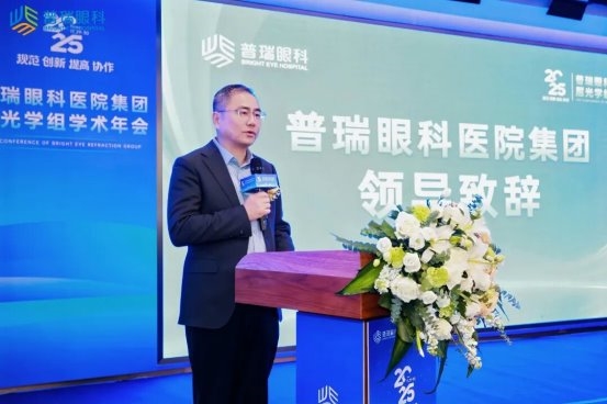 金亮总经理在开幕致辞中首先对特邀嘉宾和与会同仁表示热烈欢迎。他指出,自屈光学组成立以来,在学科建设方面,已建立起年龄结构合理、专业领域互补、传承有序的人才梯队,为屈光学科的可持续发展提供了坚实保障。他相信,在学组沈政伟组长及全体同仁的共同努力下,普瑞屈光事业必将聚势而立,向新而行。同时, 本次年会是凝聚智慧、深化协作的盛会,期待通过深入探讨与技术交流,促进屈光诊疗理念的更新与技术的精进,共同促进屈光手术高质量发展。