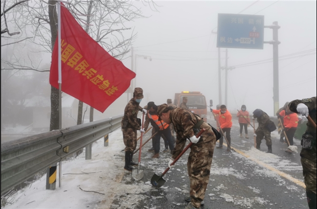 危难时刻,筑起“铁后盾” 在人民面临危难的关键时刻,祁明华总是冲锋在前,成为守护人民的坚实后盾。驻地突遭雪灾时,狂风裹挟着暴雪,道路被厚厚的积雪覆盖,群众的生命财产安全受到严重威胁。祁明华心急如焚,第一时间协调筹措物资,迅速组织民兵队伍奔赴救灾一线。他身先士卒,顶风冒雪,带领民兵们清理道路上的积雪和冰块,为救援车辆和群众开辟出一条条生命通道。同时,他积极组织转移受灾群众,将他们安全送到安置点,确保每一位群众都能得到妥善安置。在他的带领下,民兵队伍成为了抗水救灾的中坚力量,为驻地群众筑起了一道坚不可摧的“铁后盾”。