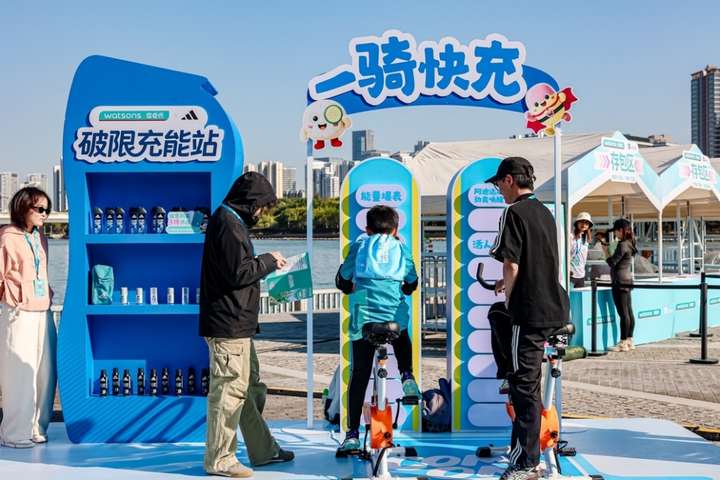 此外,现场还特别推出“满分脸色攻略”集章打卡活动。跑者前往互动区完成迷你乒乓球、投球、动感单车等指定运动挑战,参与集章抽奖。
