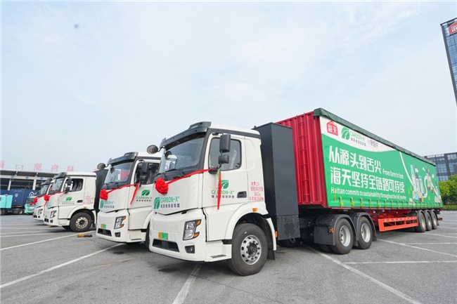 发挥链主带动作用:海天作为行业首家规模化引入新能源重卡的企业,首批投入45台车辆,实现年减碳量相当于种植约12万棵大树。目前,其每年40%的黄豆原料运输与30%的成品发货已实现新能源重卡运输,油耗降低超50%,以市场化实践证明了绿色物流的环境与经济效益。