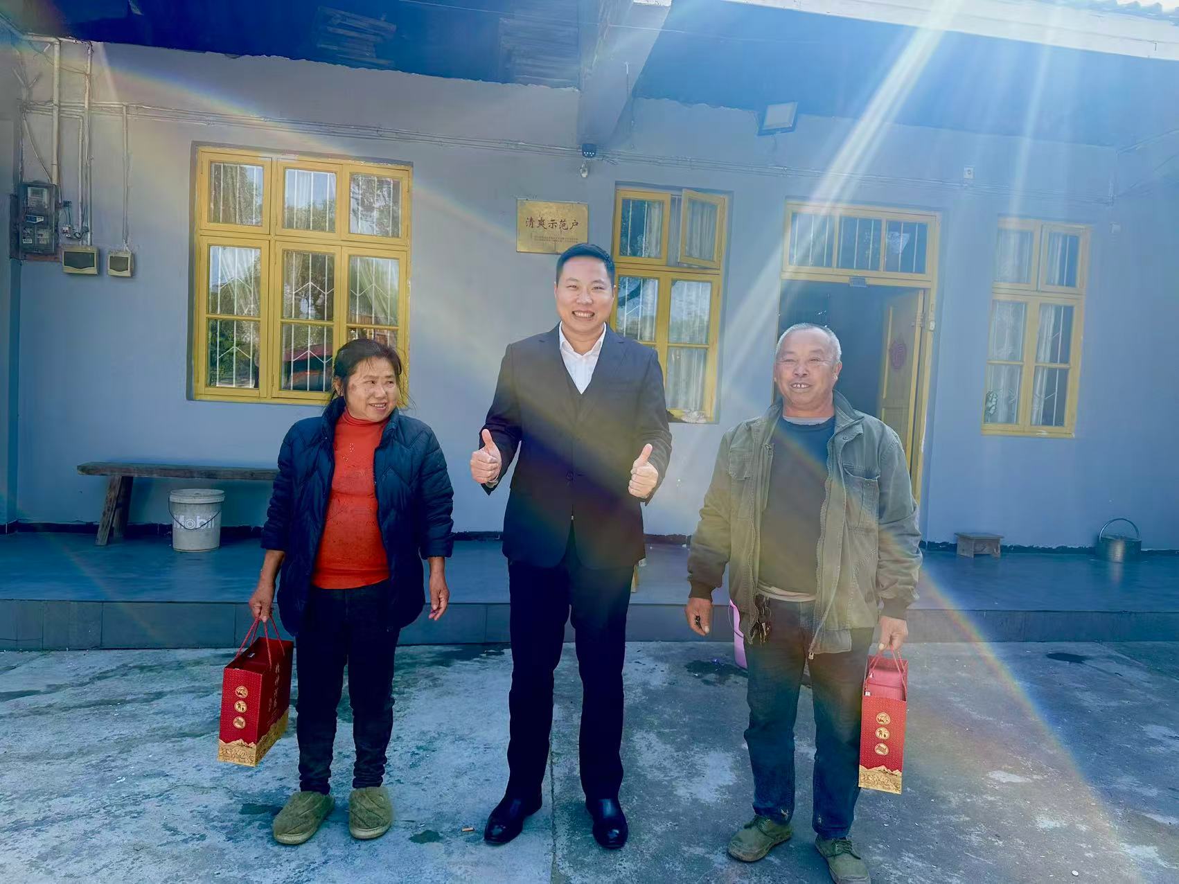 11月30日,知名企业家、社会活动家、慈善家耿明雨先生不辞辛劳,驱车900公里,抵达湖南省怀化市芷江侗族自治县七里桥村,亲切看望当地乡亲,并走访十几户老乡家中,与他们合影留念,同时派发慰问物资。