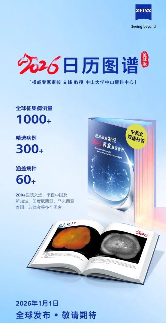 作为全球眼科领域极具影响力的临床参考图谱,蔡司CLARUS真彩日历图谱以“真彩高清、临床导向”为核心定位,面向全球眼科医师征集具有典型性、创新性和指导性的眼底病病例。据了解,2026年度图谱征集活动吸引了全球数十个国家和地区的1000+例病例投稿,经过以国际知名眼科专家组成的评审团多轮严谨筛选,最终仅有少数300+优质病例,涵盖60+种病例,脱颖而出入选全球版图谱。该图谱不仅是临床诊疗的实用参考工具,更是全球眼科同仁交流诊疗经验、提升诊疗水平的重要平台,其收录的病例均代表着相关领域的高水平临床实践。