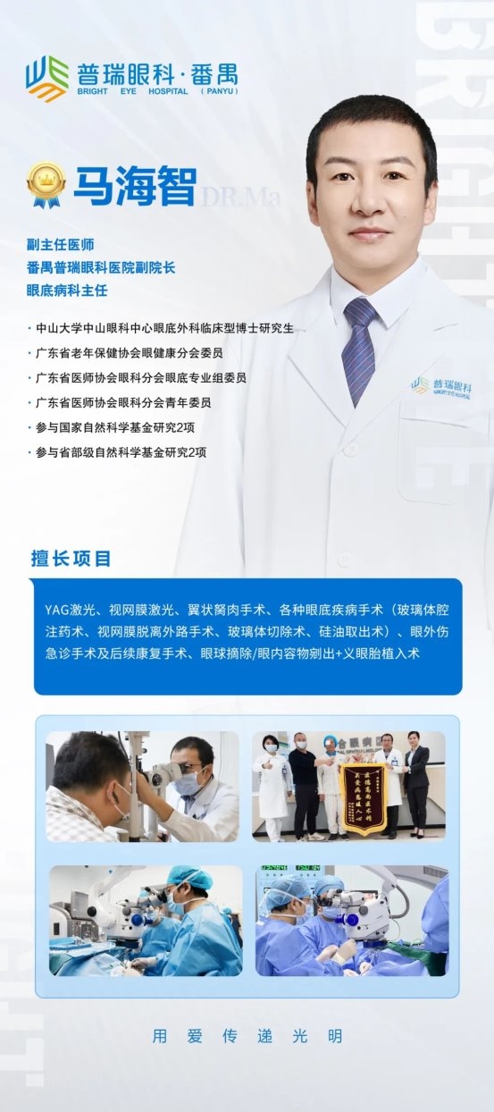 番禺普瑞眼科医院副院长、眼底病科主任马海智是中山大学中山眼科中心眼底外科临床型博士研究生,深耕YAG激光、视网膜激光、翼状胬肉手术、各类眼底疾病手术(玻璃体腔注药术、视网膜脱离外路手术、玻璃体切除术、硅油取出术)、眼外伤急诊手术及后续康复手术、眼球摘除/眼内容物剜出+义眼植入术。在临床工作中,主任始终秉持“精准诊疗、人文关怀”的理念,积极拥抱前沿诊疗技术,善于结合先进设备优化诊疗流程,参与国家自然科学基金研究2项、参与省部级自然科学基金研究2项。此次病例入选全球权威图谱,正是对其专业能力与诊疗水平的高度肯定。