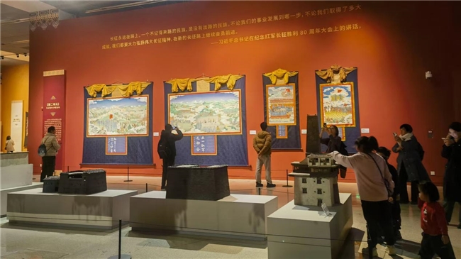 展览精心设置五大单元,以时间为轴,以画卷为媒,系统叙事:“雪域丹青 千年流韵”溯源艺术本源;“长征精神 炉霍留痕”重温军民鱼水深情;“抗震救灾 涅槃新生”铭记八方支援、重建家园的壮举;“山歌唐卡 妙音寄情”以本土乡音传递时代心声;“风物唐卡 映照同心”则让地域风情与红色记忆交相辉映,共同描绘出一幅从革命岁月到美好新时代的动人长卷。