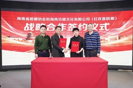 在全体嘉宾的共同见证下,海南红双喜槟榔与海南省槟榔协会正式签订了战略合作协议。双方将在产品科研、品牌推广等领域展开深度合作,共同推动槟榔行业的技术进步和品牌升级。这一举措不仅有助于提升红双喜槟榔的品牌知名度和美誉度,也将为整个行业的发展注入新的活力。