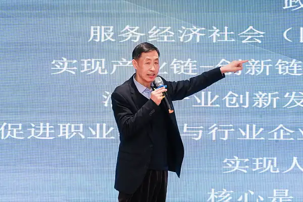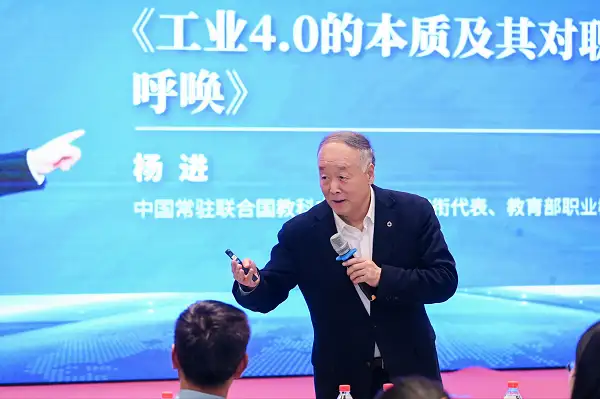 中国常驻联合国教科文组织原大使衔代表、教育部职业教育技术中心研究所原所长、教授杨进,作《工业4.0的本质及其对职业教育变革的呼唤》专题报告。提出教育应转向以能力为本位,推动产教融合、工学结合,注重培养学生高层次思维能力和实践能力,并呼吁加强职业教育国际合作。