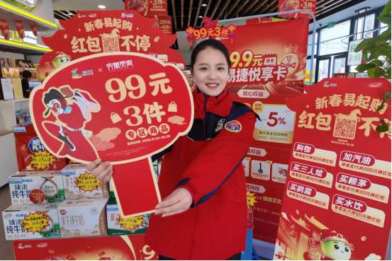 全国易捷便利店同步开设“百元专区”,集结精选年货礼包与《大闹天宫》联名商品,专区购物满额即赠大圣定制周边;面向车主的“马力全开 充值油礼”活动同步上线,单笔充值满额可获超值组合礼包,为春节出行添助力。