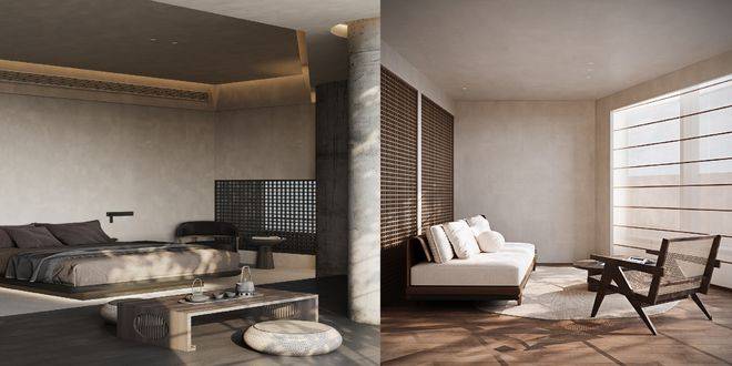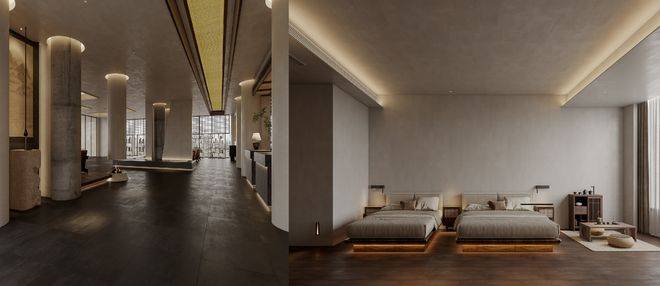 建筑本身亦彰显疗愈美学。双子塔结构由一颗“种子”造型的悬空建筑衔接,共7层,规划有100余间套侘寂美学客房,运用原木等天然材质,营造宁静放松的居停氛围。配套涵盖自由融合餐厅、多功能“种子舱”、户外草地酒吧,以及瑜伽、SPA、桑拿、健身房等康乐设施,满足商务、社交与休憩的多重需求。
