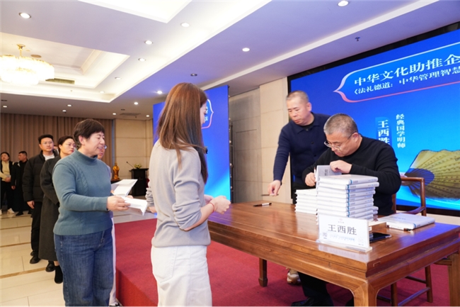 据了解,作者王西胜始终坚守公益传播初心。该书出版后,他与广东蓝态公益基金会工作团队先后赴广州、上海、德庆、菏泽、保定、北京、哈尔滨、平江、郑州、武汉、成都、英德等12个城市,开展“中华文化助推企业高质量发展”公益巡讲。巡讲中,王西胜通过体系讲解、案例剖析、现场答疑,并向读者签名赠阅新书,以通俗化表达推动传统文化融入现代生活。