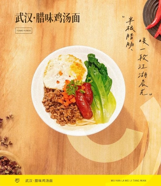 首批参与活动的六款早餐面食,分别来自中西部及华南地区饮食文化特色突出的城市。成都红油鸡汤面融合火锅红油与醇厚鸡汤,呈现川式早点的热情与温润;随州香菇鸡汤面选用本地山菌,汤头清鲜自然;潮州手打牛肉丸粉突出手工制作的劲道口感;南宁老友鸡汤面以酸笋、豆豉调味,延续街巷间的传统风味;武汉腊味鸡汤面将腌制食材与鲜汤结合,体现江城早餐的扎实风格;柳州螺蛳鸡汤粉则在保留传统酸辣特色的同时,以鸡汤调和风味,使其更适配不同地域客群的口味偏好。