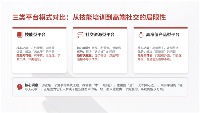 技能型平台给了工具,没给意义; 社交型平台给了连接,没给成交; 高净值平台给了深度,没给入口。