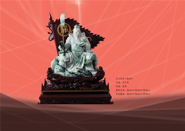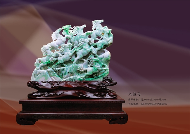 心中的坐标参照,是归属,也是召唤。这坐标宏阔得让个体如此卑微,这归属却也足以令人心驰神往。华夏民族精神的归属,中式审美的归属,玉雕作品内蕴能量的归属……就在这样的归属中,方卡东为自己的玉雕找到美学依据,找到民族气派、民间气息、民俗趣味,找到水墨玉雕和诗性翡翠。坐标系上的归属感,让方卡东的人生和事业有了安顿,他的事业像花城广州的春天,洋溢着生命的气息,他的翡翠跃然,滋然,栩栩然。《佳缘天成》是莆田的召唤,是爱的回归;《八骏马》是阳刚的奔腾,是时间的召唤;《关公夜读春秋》是历史的召唤,是精神的回归。被放置在这个坐标系上创作的翡翠,获得强大的审美穿透力和艺术生命力,这些力量让归属的召唤与安顿成为可能。