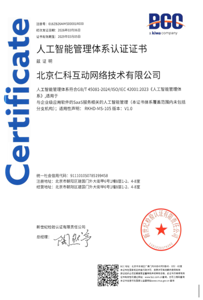 在当前数字化向智能化加速转型的浪潮中,AI 已成为企业营销服业务管理的核心驱动力。销售易获得 ISO42001 认证,为客户、为同行业企业在 AI 安全应用上树立了标杆。未来,销售易将持续打磨更安全、更可靠、更领先的 AI CRM,助力企业在智能化竞争中稳操胜券、稳健发展。