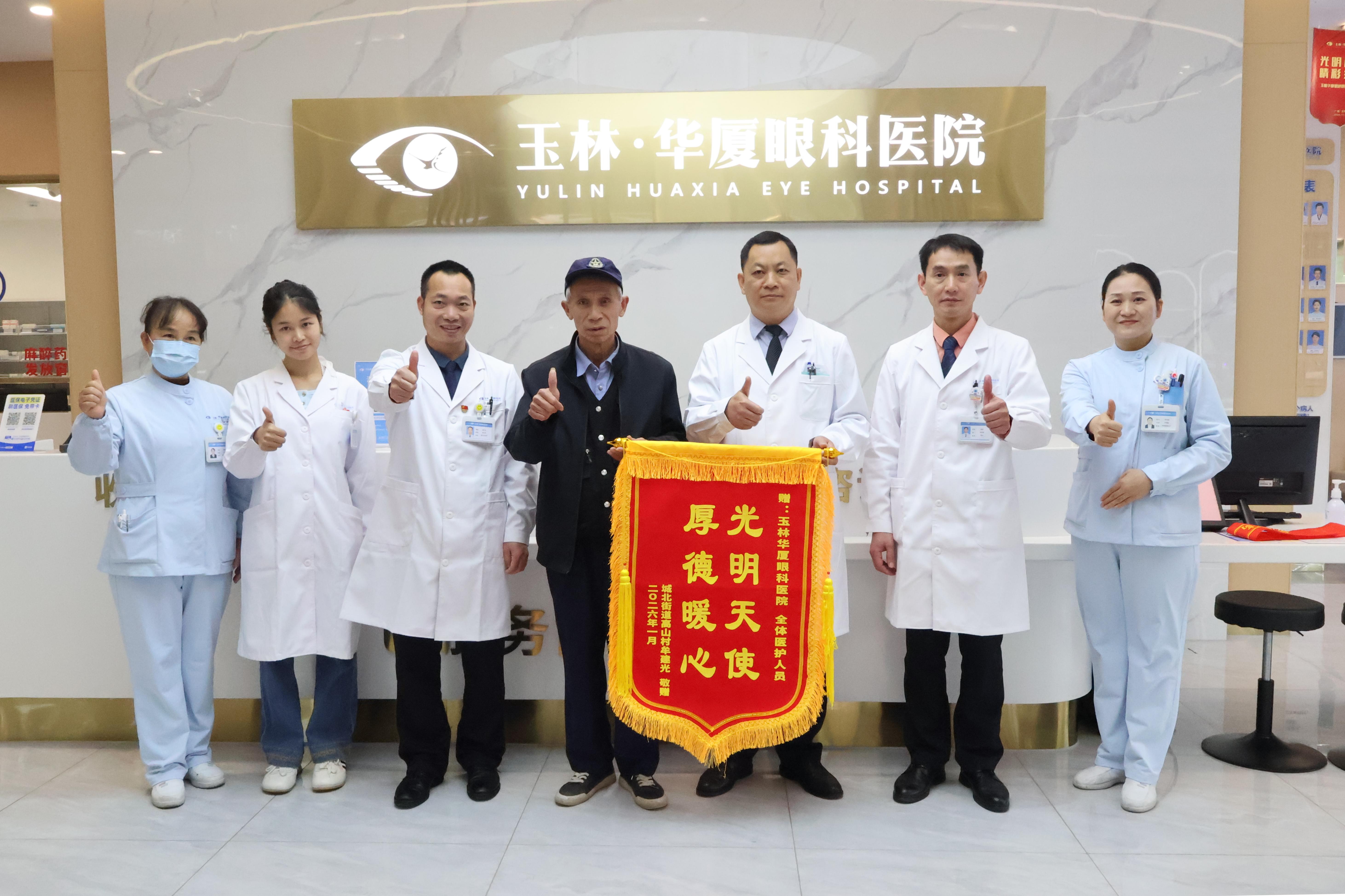 “这里的医生护士都非常好,技术专业,态度亲切,让我住院期间很踏实。”牟阿叔感动地说道。为表达对全体医护人员的感谢,他在复查之际,特意定制了锦旗送至医院。“这是一份特别的心意,感谢他们帮我恢复清晰视界。”牟阿叔说。