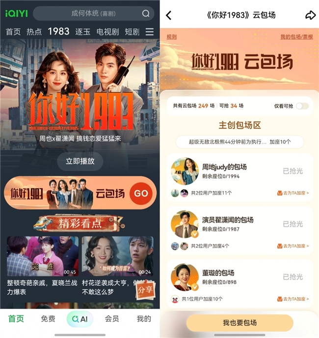 ·打破时空的“云包场”,让爱同频共振:打破异地同步追剧的空间限制,用户可一键发起热门剧集专属包场,邀请亲友同步观看、实时互动;还能偶遇剧集主创的官方包场,和成千上万的同好一起刷屏,那种“万人同屏”的热闹,才是追剧的灵魂!