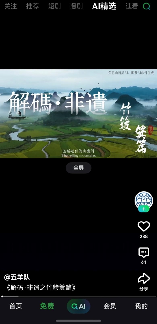 ·新增「AI精选频道」,多元内容免费看:首页新增的“AI精选”频道,像一个好奇心盲盒。这里有AI生成的非遗创意短片,让水墨画动起来;也有AI漫剧,把网文小说变成动态漫画。重点是,全免费。等外卖的时候点开看两分钟,你会发现,原来AI除了写作业,做出来的内容还挺下饭。
