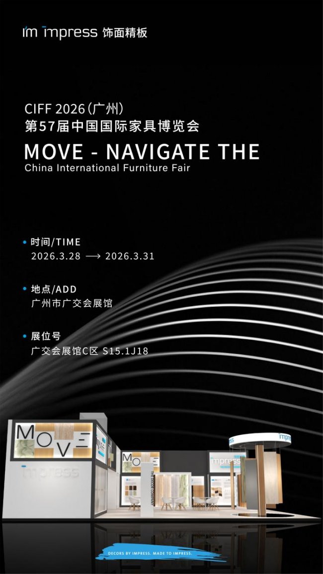 1928年,英普莱斯在德国诞生,彼时这个专注于装饰纸的品牌,或许未曾料到,近百年后会跨越千山万水,在中国家居市场书写全新故事。2026年3月28日至31日,这家拥有百年历史的德企,将带着全新理念“MOVE”亮相第57届中国家博会(CIFF广州),于广交会展馆C区S15.1J18展位,与中国合作伙伴深入探讨转型、创新与共生等话题。
