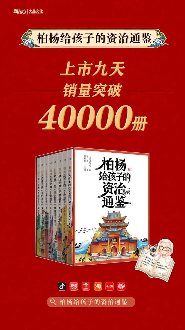 近日,由知名思想家柏杨先生的夫人郭张香华女士授权改编、新东方大愚文化重磅出品的《柏杨给孩子的〈资治通鉴〉》,自上市以来便迅速在童书市场掀起一股“历史热”,短短九天,销量即突破四万册。在碎片化阅读盛行、电子屏幕日益占据儿童注意力的当下,这套厚重的历史读物为何能逆势出圈,迅速俘获家长与孩子的心?其热销背后,生动演绎了一场历史经典与时代需求的“双向奔赴”,不仅折射出国内家庭对“深度阅读”回归的迫切渴望,更让历史智慧在孩子眼中焕发了新的生机。