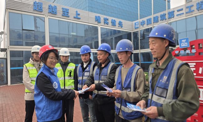 3月18日,上海市社会保险事业管理中心徐汇分中心工作人员到中建二局上海金融城C地块项目开展工伤保险专项宣传活动,把社保服务和安全防护知识送到一线工友身边。