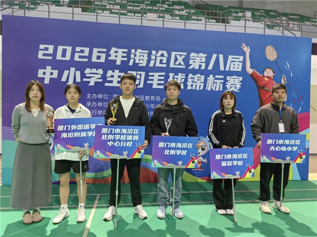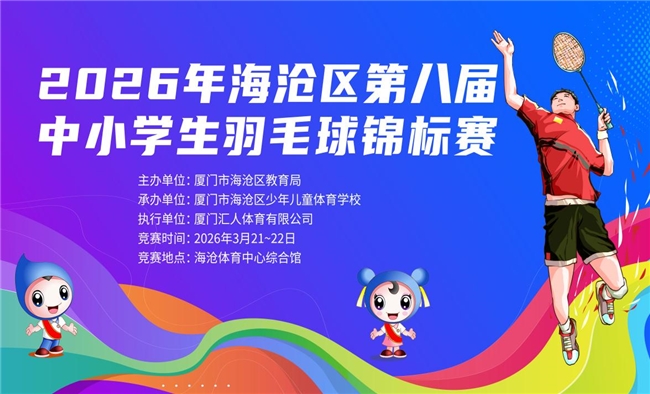 3月22日,2026年海沧区第八届中小学生羽毛球锦标赛在海沧体育中心综合馆圆满收官。本届赛事由海沧区教育局主办、海沧区少年儿童体育学校承办,厦门汇人体育有限公司执行,共吸引全区近300名中小学生运动员挥拍上阵,旨在深入推进阳光体育运动,完善青少年体育赛事体系,是海沧区体教融合成果的一次集中展示。