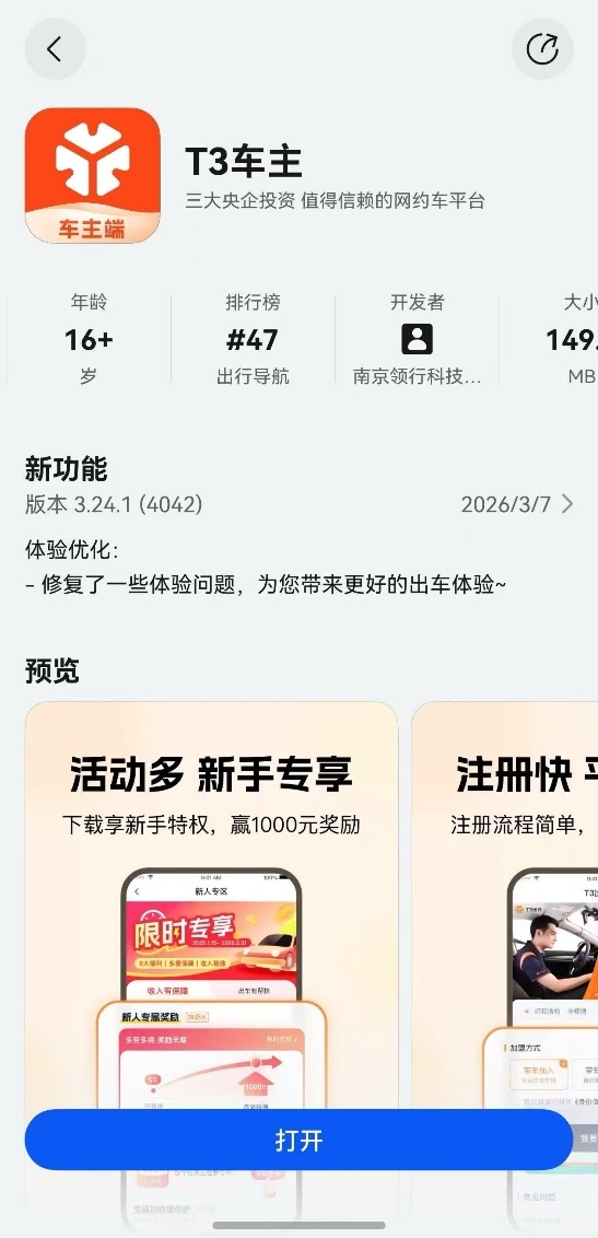 近期鸿蒙版T3车主App正式上架华为应用市场,标志着T3出行在鸿蒙生态中完成了车主服务的重要拼图。作为网约车行业的领军企业之一,T3出行持续以合规、安全、智能为核心驱动发展——据最新数据显示,T3出行在订单量前10名的平台中合规率持续位居前列,已覆盖全国194座城市,拥有累计注册用户2.3亿,日订单量突破300万单。该版本上线即实现100%功能全覆盖,并做到鸿蒙、安卓、iOS三端体验高度一致,可充分满足车主接单、提现、查看消息、获取服务等各项需求,为正在使用鸿蒙设备的车主带来流畅、统一的使用体验。