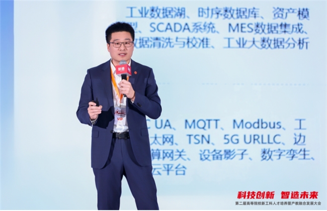 新道科技股份有限公司副总裁郑洪滨在会上以“数智共生 产教融创——用友产业驱动的新工科人才培养实践”为题作主题报告。他表示,企业最想要的是知业务、精技术、会AI、懂应用、有品德的人才。随后,郑洪滨详细介绍了新道科技企业认知平台、工业控制技术、工业物联技术、标识解析技术、大数据技术、工业软件应用与开发、人工智能感知、人工智能决策、智能体应用、具身智能应用、智能制造、安全可控、考赛测评、数智科研、AI工具领域的产品和解决方案。同时,新道科技基于用友大量的大中型客户,开发了十大行业50大产业案例,让学生熟悉不同企业的典型应用场景。他介绍,新道科技将携手院校在全国建设30个用友企业数智化转型协同交付基地,基地是集认知、实训、研发、交付于一体的产教融合阵地,构建认知-实践-创新-交付的阶梯式培养模式,形成完整人才培养闭环。