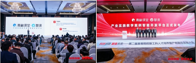 3月22日,第二届高等院校新工科人才培养暨产教融合发展大会在北京举行。大会以“科技创新 智造未来”为主题,来自全国各地的本科院校、职业院校、行业企业以及媒体等1000余位嘉宾共聚一堂,共议人工智能驱动下新工科教育发展的创新路径,共探“人工智能+教育”应用场景新范式、校企协同育人新模式,着力构建新工科教育高质量发展新生态。会上,青椒慧课——产业实践教学案例智能开发平台正式发布。新道科技与多家院校、企业签署战略合作协议。