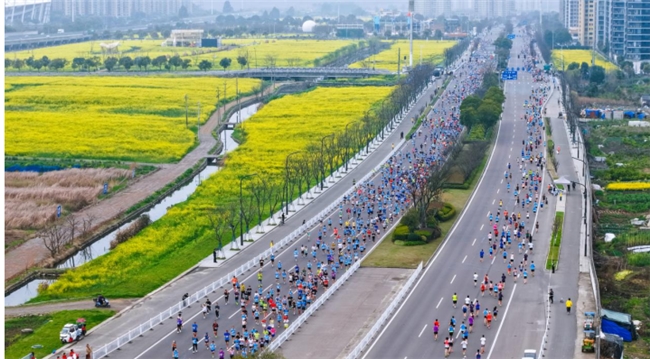 晨光微露,选手们从乐清体育中心启程,赛道如丝带般串联起清和公园、总部经济园、胜利塘公园等城市地标,现代都市与自然山水在奔跑中铺展成流动画卷。跑者们穿越油菜花田,每一步都踏在春天的脉搏上,这不仅是一场速度的较量,更是一场和乐清的深情对话。
