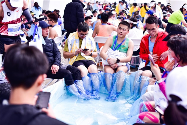 赛道上是奔跑,赛道外是守护。专业裁判严谨执裁,志愿者暖心服务;医护团队全程守护,急救跑者随时响应;救护车严阵以待,补给站物资充足,每一个细节,都是对“安全完赛”的庄严承诺。从赛中守护到赛后关怀,温暖仍在延续。完赛后,游泳馆冰敷区贴心开放,为选手提供专业冰敷服务,完赛包里还特别准备了专属拖鞋,让跑者第一时间放松双脚,舒缓赛后疲惫。