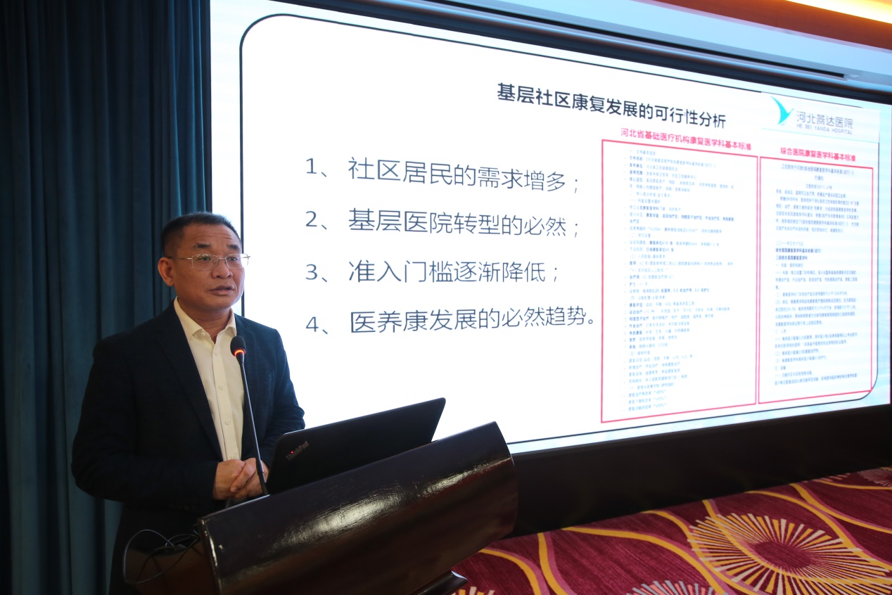 康复医学科主任王张立分享《关于康复治疗对神经损伤患者效用评价》,通过临床数据对比,阐述康复治疗在神经损伤患者功能恢复中的重要作用及疗效评价方法;燕达医院老年医学科主任王诗男围绕《关于康复治疗在提高老年群体健康水平的实际应用》,结合人口老龄化趋势,讲解老年康复的重点方向、适宜技术及个性化方案,为基层开展老年康复服务提供实践思路;全科医学科谢建新主任就《关于社区医疗机构开展康复治疗可行性分析》展开讲解,结合基层医疗实际,分析社区康复的发展优势、面临挑战及推进策略,为完善区域康复服务体系提供参考;心血管内科王志娟、高压氧科陈川华分别围绕心脏康复训练方法、高压氧治疗的重要性作专题分享,内容贴合基层临床需求,实操性极强。