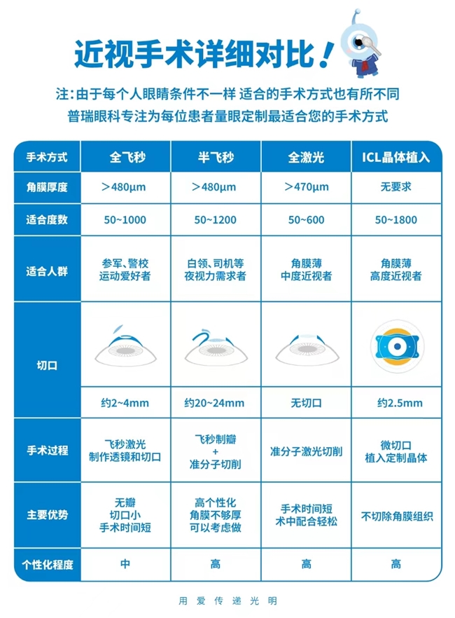 不同手术方式各有优劣,最终选择哪一种,完全取决于患者术前检查后的眼部条件和医生的专业判断。