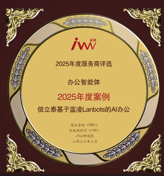 近日,由德本咨询(DBC)、《互联网周刊》、eNet研究院联合举办的“2025年度服务商评选金i奖”结果正式揭晓,信立泰基于蓝凌Lanbots的AI办公案例凭借行业领先的技术落地能力、标杆级的场景应用价值与实践成效,成功斩获“办公智能体2025年度案例金i奖”,彰显了蓝凌在企业级AI智能体领域的领军实力与行业标杆地位。
