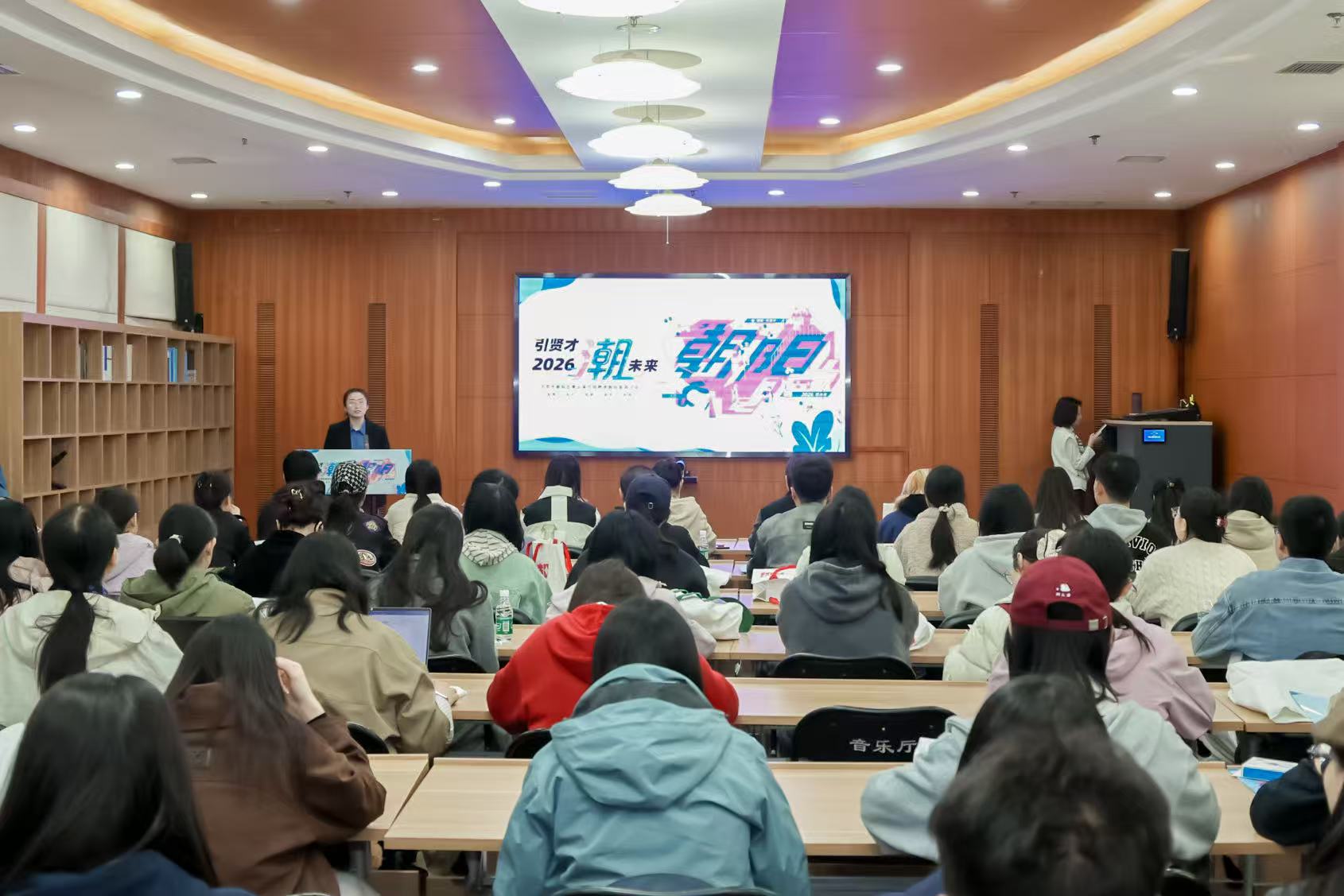中央民族大学往届毕业生、2025年度“引贤计划”入职人员刘宇也来到现场,结合自身工作经历,分享了在朝阳区的工作感悟,让在场学子对朝阳区事业单位的工作环境与职业发展空间有了更直观、更深入的了解。