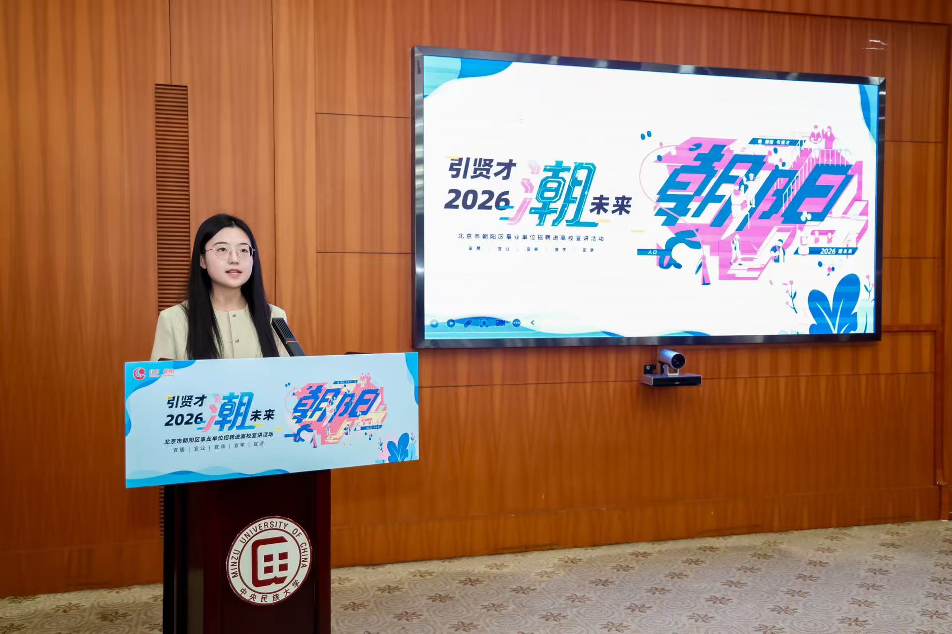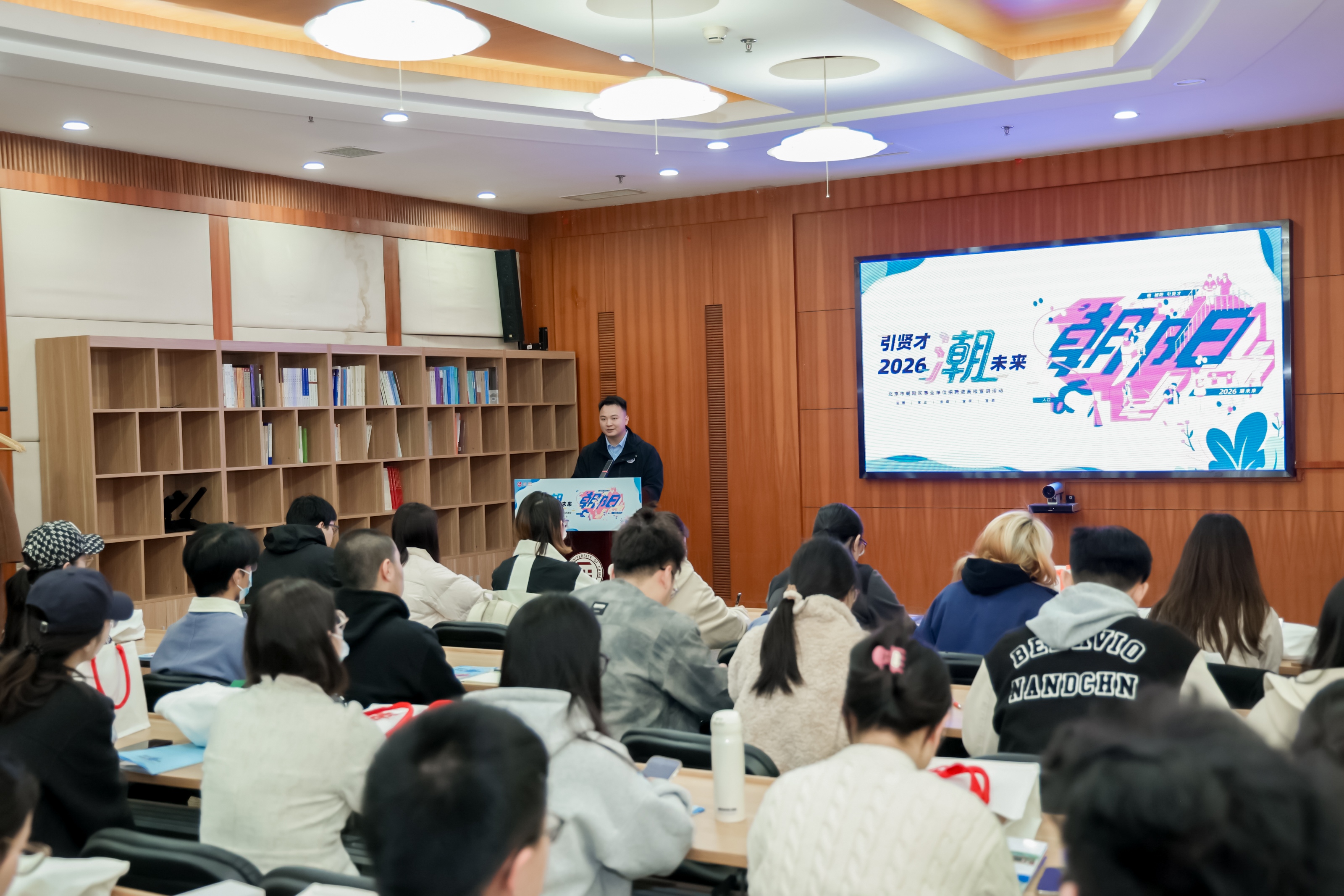 3月23日,由北京市朝阳区人力资源和社会保障局主办的“引贤才,‘潮’未来”— 2026年朝阳区事业单位招聘进高校宣讲系列活动,分别在中央民族大学、中国人民大学拉开帷幕,这标志着朝阳区2026年度“引贤计划”暨事业单位公开招聘正式启动。本次活动精准对接高校毕业生就业需求,深度释放朝阳区位优势,通过政策解读、现场答疑、经验分享等形式,吸引百余名学子参与,为“十五五”时期区域高质量发展广聚青年才俊。