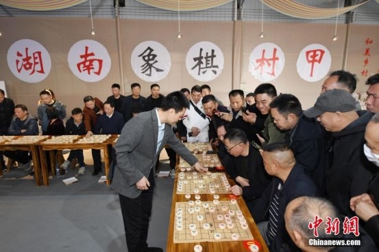 湖南岳阳湘阴举办的“象棋村甲”六冠王许银川应邀对战32位“村冠”“镇冠”